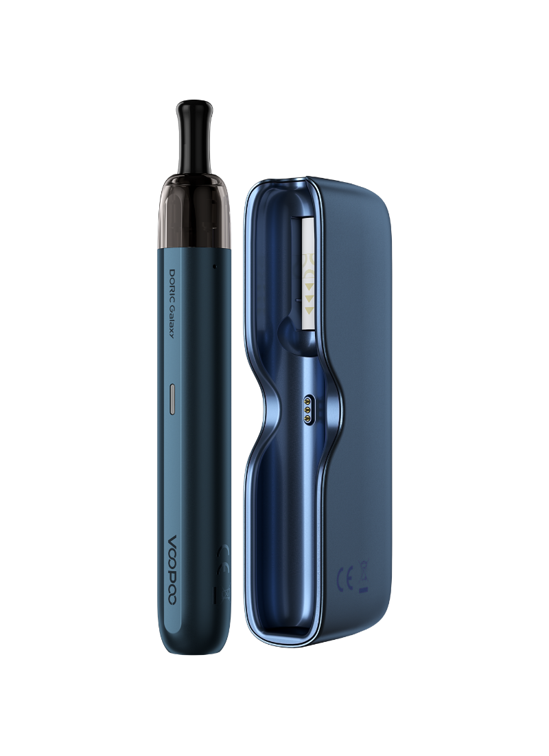Voopoo DORIC Galaxy Pod Kit er fremstillet i aluminiumslegering og leverer et output på op til 10W. Doric Galaxy Pod Kit har et indbygget batteri med en kapacitet på 500mAh, som oplades via det medfølgende USB-C kabel eller den medfølgende 1800mAh powerbank. Til Doric Galaxy Pod Kit medfølger Voopoo's Galaxy Cartridge Pod med en indbygget 1,2 ohm coil og en væskekapacitet på 2 ml. Væske påfyldes fra siden af pod'en. Der er også mulighed for at købe ekstra coils og pods separat.