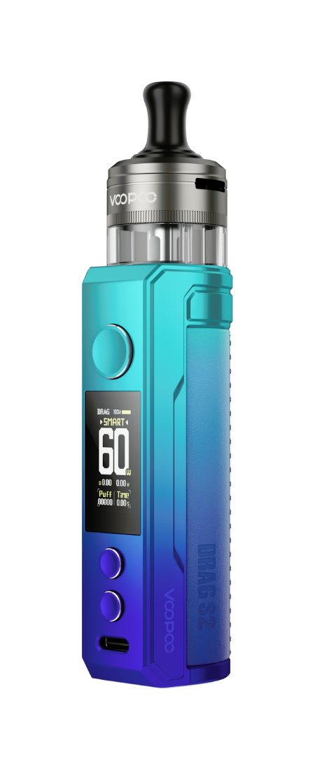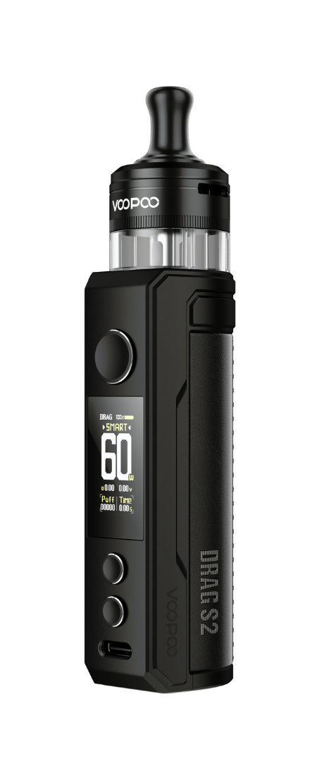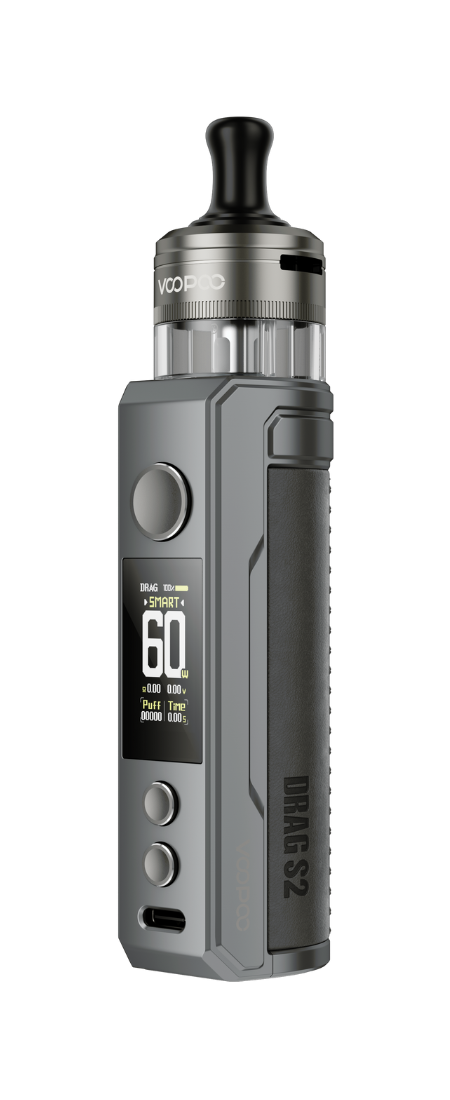 Voopoo Drag S2 kit er blevet opdateret, men bibeholder det klassiske design i læder og metal. Det har en maksimal output-effekt på 60 watt og er udstyret med et indbygget 2500mAh batteri, som kan oplades via det medfølgende USB-C kabel. Kittet anvender de nye PnP X coils, hvor airflowet i pod tanken er flyttet til toppen for at minimere kondens.